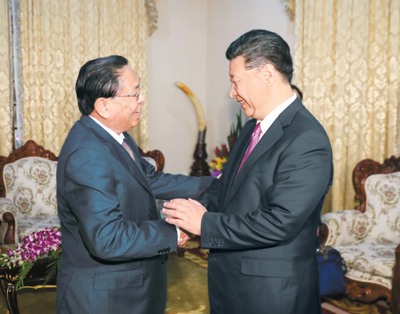 十一月十三日,中共中央总书记、国家主席习近平在万象会见老挝人民革命党中央委员会前总书记、前国家主席朱马里。新华社记者 丁 林摄