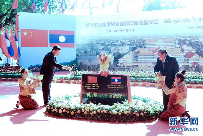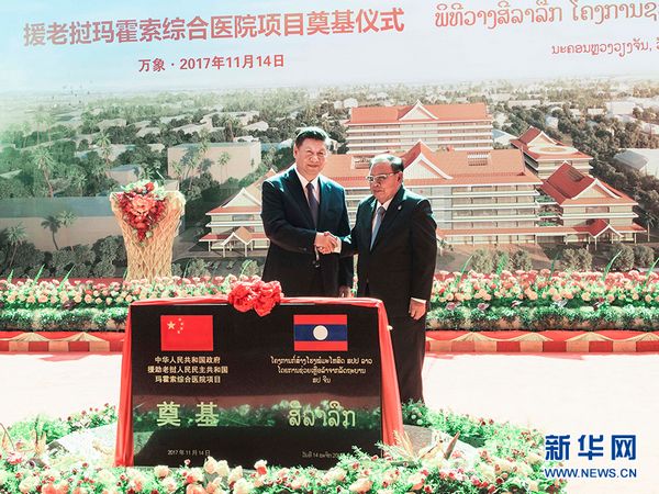 在万象一道出席玛霍索综合医院奠基仪式。新华社记者 李涛 摄