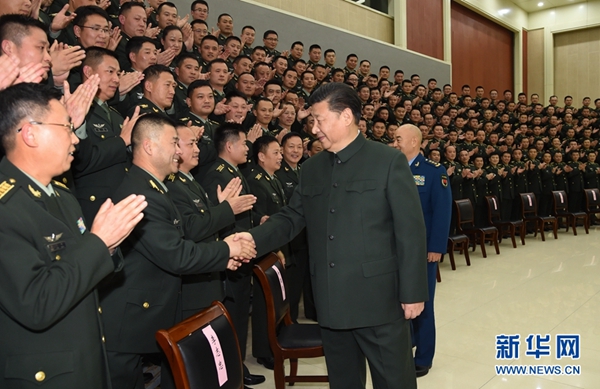 12月13日,中共中央总书记、国家主席、中央军委主席习近平到第71集团军视察。这是习近平亲切接见集团军机关全体干部和所属部队团以上干部。新华社记者 李刚 摄