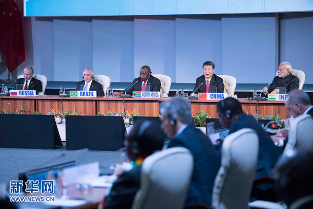 习近平强调,中国特色社会主义进入了新时代,同时中国是世界上最大发展中国家的地位没有变。无论将来中国怎么发展,都永远属于发展中国家,都会坚定支持广大发展中国家发展,都会继续致力于同大家发展紧密的伙伴关系。我们要以“金砖+”合作为平台,同心协力,砥砺奋进,携手推动新兴市场国家和发展中国家在共同发展中取得更大成就。