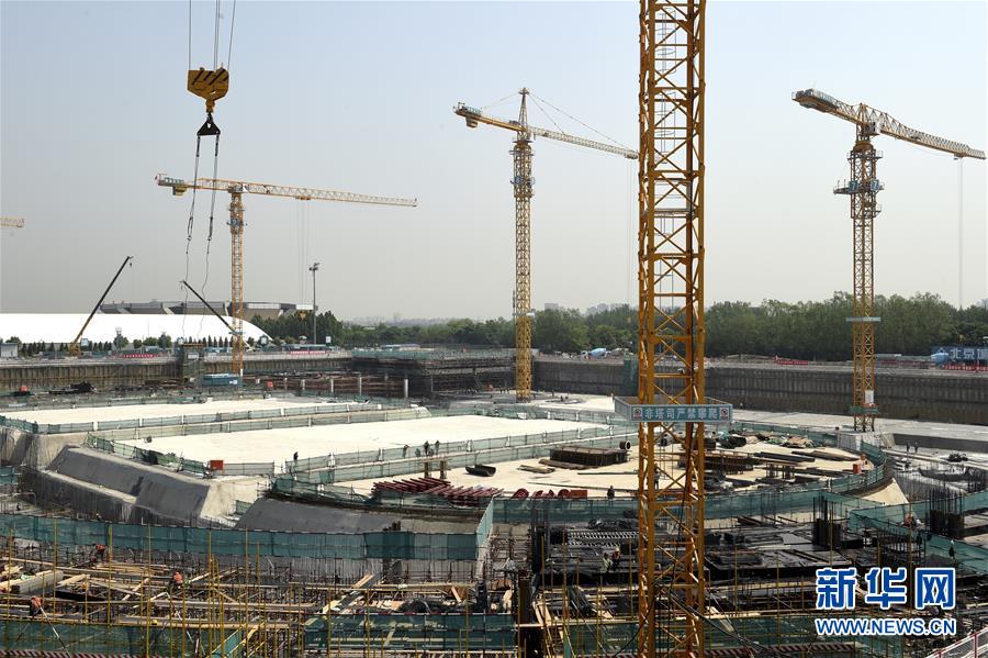 这是2018年5月9日拍摄的位于奥林匹克森林公园西侧的北京冬奥会场馆国家速滑馆建设工地。 新华社记者罗晓光摄