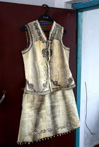 鱼皮衣是赫哲人在夏天时穿着的服装,因为那时的捕鱼量最多,冬季里,赫哲人和诸多生活在东北的少数民族一样,穿着兽皮制成的衣服,他们在冬季里的主要活动就是驾着狗拉雪橇在冰天雪地中狩猎。