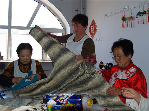 不再靠捕鱼为生的街津口乡开始发展起旅游业,当地办起了民俗文化村,各种鱼皮制品一下子就成了街津口特有的旅游纪念品,尤文凤从中看到了商机。她在民俗文化村里租了一个摊位,专卖自己制作的各类鱼皮制品,她的儿子也在文化村里工作,有人花5000元订做了一件鱼皮衣,他亲眼目睹了鱼皮衣带来的效益,一向认为鱼皮衣没什么用的他改变了想法,开始学习制作鱼皮衣,他还把妻子一道拉来学。这,让尤文凤十分高兴。